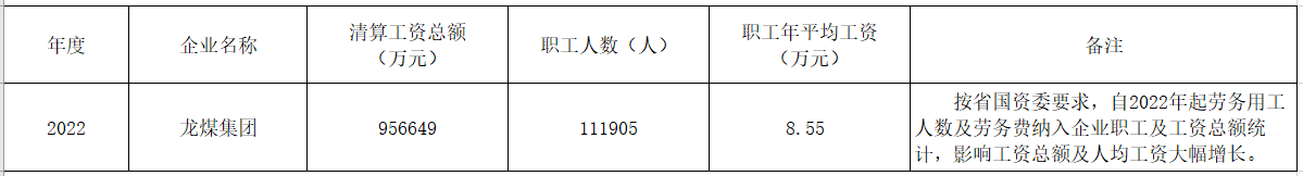 2022年龍煤集團工資分配信息披露